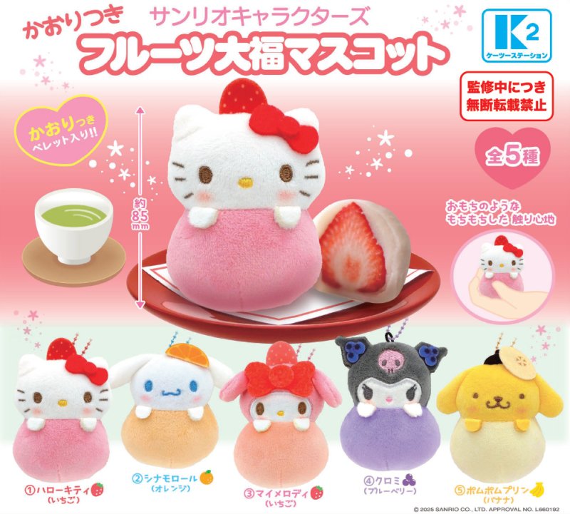 *GACHAPON* Sanrio Characters "Fragrant Fruit Daifuku Mochi" Plush Mascot Keychain