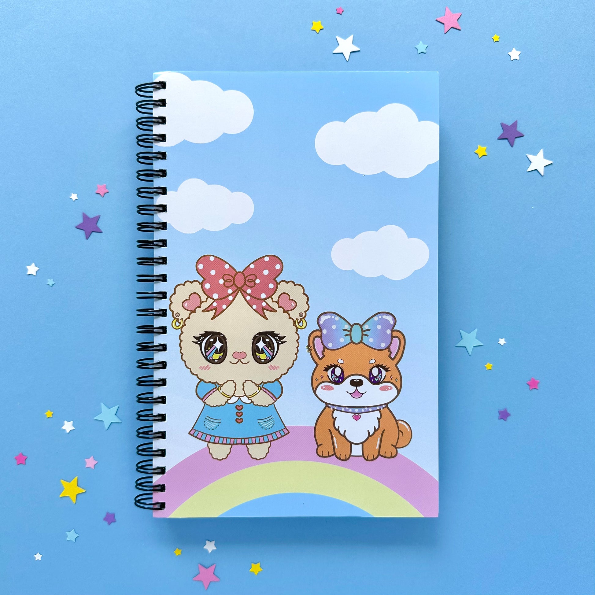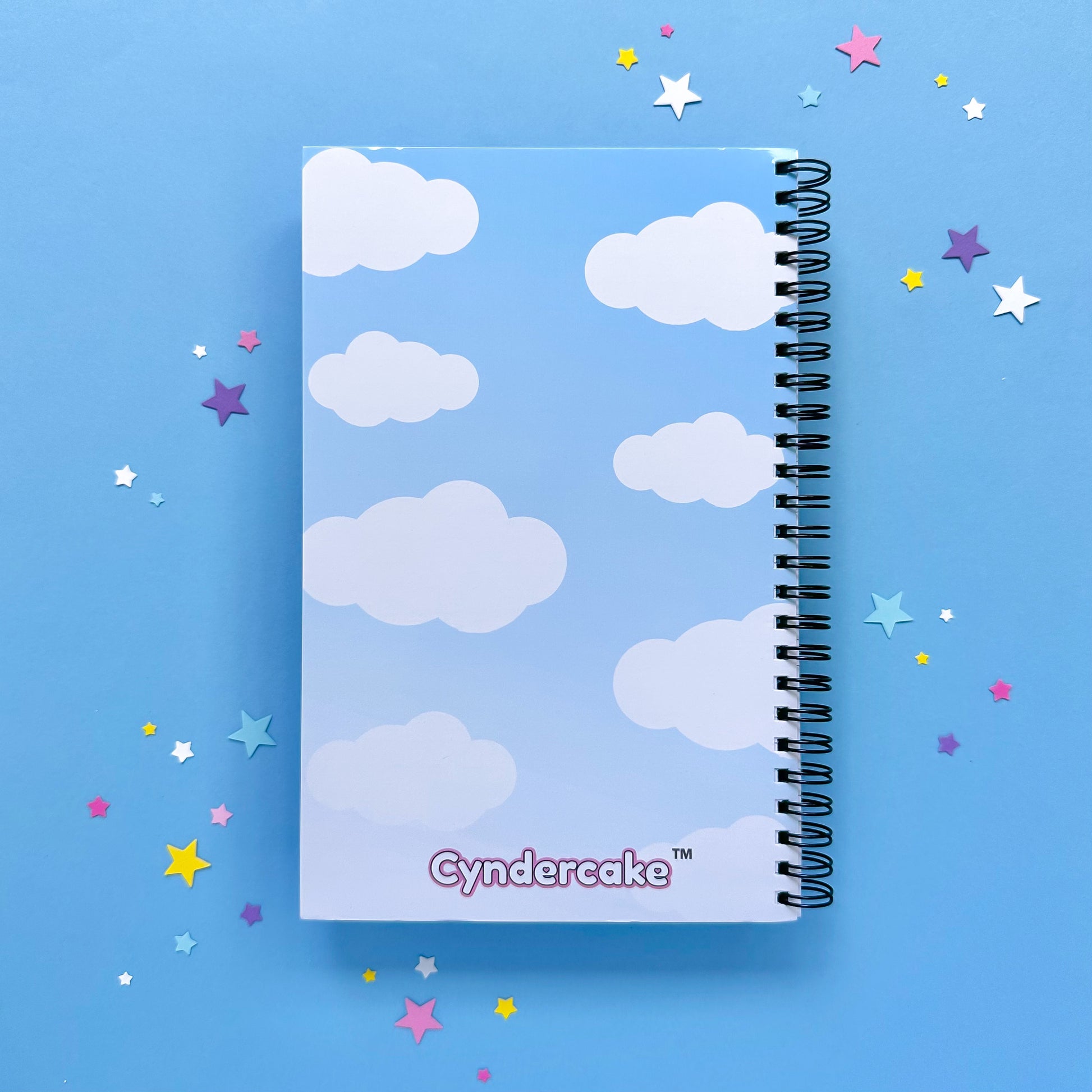 The first ever Cyndercake Notebooks with an all-over colored print with a rainbow and both character designs on the book covers. It is perfect to use for work, journaling, and even for school.